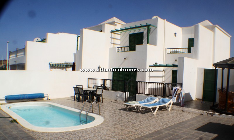 Large semi detached 3 bedroom house on a corner plot with private swimming pool. The townhouse consists of three bedrooms, 2 bathrooms, lounge/diner, separate kitchen and utility room. Outside you have a private swimming pool, large terrace area with gazebo and at the front there is off road parking for two cars.