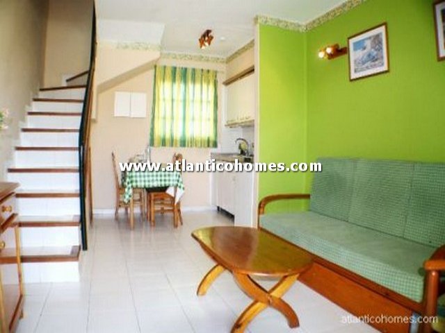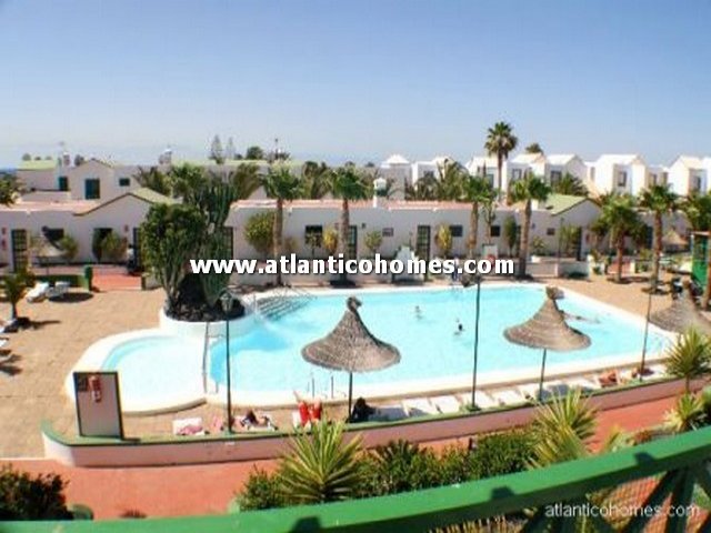 A one bedroom townhouse located on a lovely complex in Matagorda, with a large communal swimming pool and mature gardens. The townhouse consists of an open plan lounge/kitchen/diner on the ground floor with a patio over looking the swimming pool and upstairs is a double bedroom and bathroom. The upstairs bedroom also has a balcony with sea views and over looks the pool. Apartment for sale in Lanzarote.