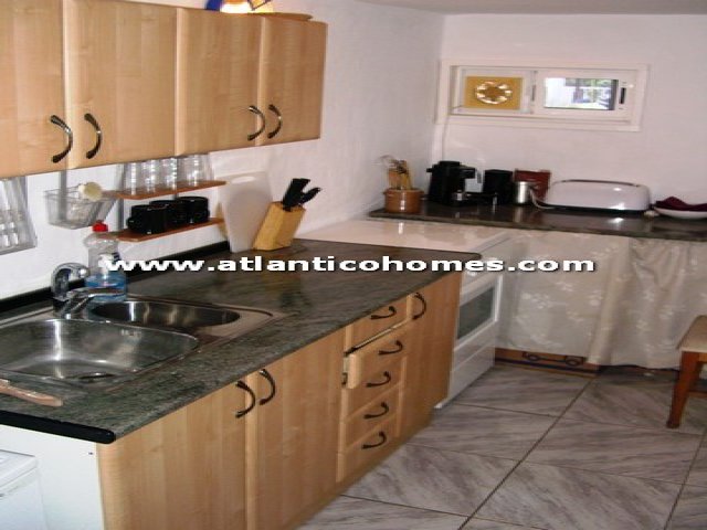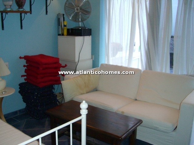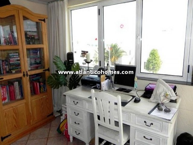 A spacious top floor two bedroom apartment with a separate studio apartment located in central Puerto del Carmen only a stones throw from the main Playa Grande beach. The apartment consists of two bedrooms, 1 bathroom (newly refurbished this year), a modern fully equipped kitchen and a large living room with a closed in terrace currently being used as an office. The house has air conditioning fitted throughout and the living room has a wood burning chimney. On the ground floor there is an independent studio apartment with its own entrance and tiled garden area. Apartment for sale in Lanzarote