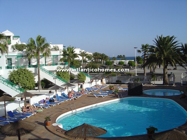 A fantastic top floor apartment on the frontline Playa Park complex. The apartments consists of 1 bedroom, 1 bathroom with walk-in marble shower, lounge/diner and kitchen sepertaed by a breakfast bar. The apartment is located in the centre of the complex and therefore has fantastic sea views and over looks the swimming pool. The complex has a large heated communal pool and spacious sunbathing areas. The development is set only 50 metres back from the fantastic Los Pocillos beach. Apartment for sale in Lanzarote