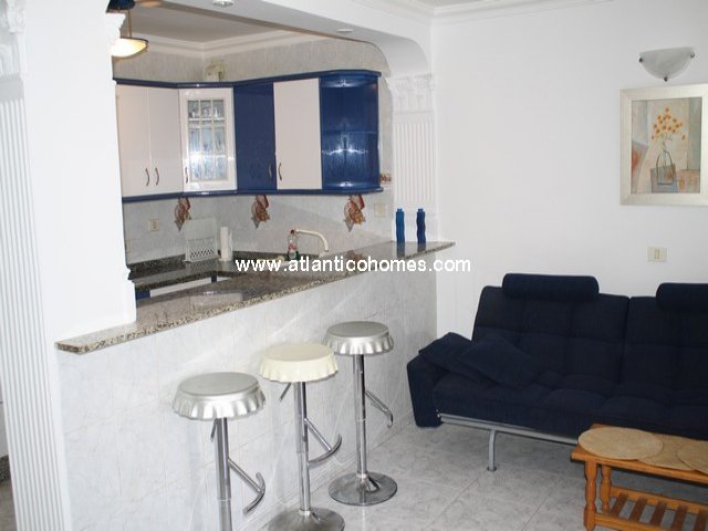 Villa for sale in Lanzarote Bargain !!! large well maintained apartment situated on a frontline complex in the centre of Puerto del Carmen. The apartment comprises of an open plan lounge/diner with recently renovated fitted kitchen and a separate utility room. There are two double bedrooms, the second bedroom leads on to another room suitable for use as either an office or temporary third bedroom or baby room. The apartment is sold fully furnished and had an English satellite system installed. There is a good sized private closed in terrace with sea views. The main complex entrance leads straight on to the main Avenida of Puerto del Carmen.