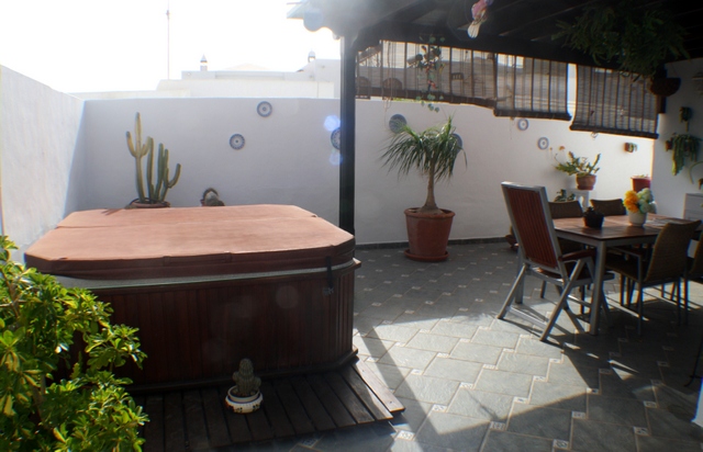 A fantastic detached 3 bedroom villa in a quiet side street yet still just a few minutes walk to the main Puerto del Carmen beach. The villa consists of three bedrooms, 2 bathrooms, lounge/diner and kitchen. Outside in the private garden there is a Jacuzzi and there is also a garage