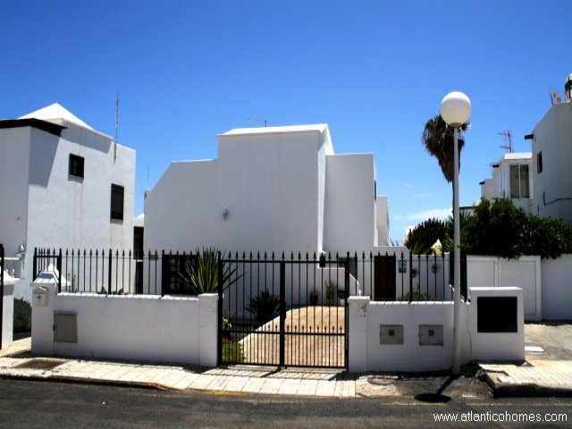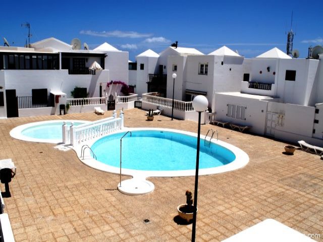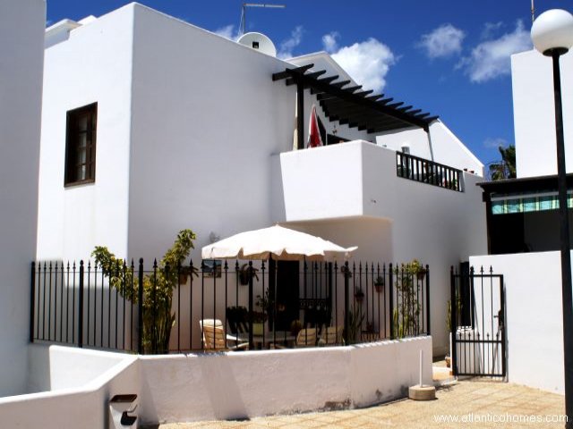 Villa for sale in Lanzarote A good sized townhouse located on a small complex in a quiet residential area of Puerto de Carmen, yet still only a few minutes walk to the main beach. The house consists of 3 double bedrooms, 2 bathrooms, lounge/diner/kitchen, utility area, balcony, private garden with barbeque area, large communal swimming pool & off road parking. The plot has security railings all the way around.