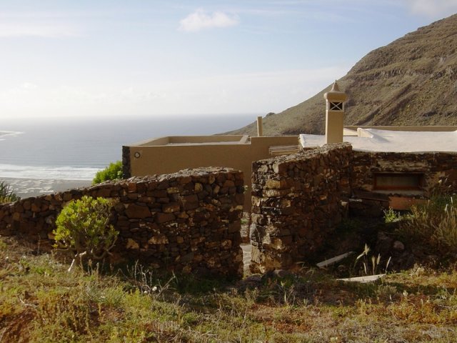 Once in a lifetime chance to purchase a fantastic country house set 170 metres above sea level on Lanzarote’s highest (670 metres) and oldest (16 million years old) mountain El Risco de Famara. This finca is 167m2 constructed and stands on its own plot of 65,000 sqm in a special protection area where no construction has been permitted since 1970. Looking out from the finca you have outstanding panoramic views across the beautiful beaches of Famara and the fishing village of La Caleta. The house consists of 3 bedrooms, 2 doubles and 1 single, 1 bathroom, seperate kitchen, dining room and a spacious living room. There house has a terraced area at the front to sit and enjoy the views and at the back there is a patio area complete with a stone oven. There is also a double garage that is fully tiled and that could also be used as extra accomodation. House for sale in Lanzarote