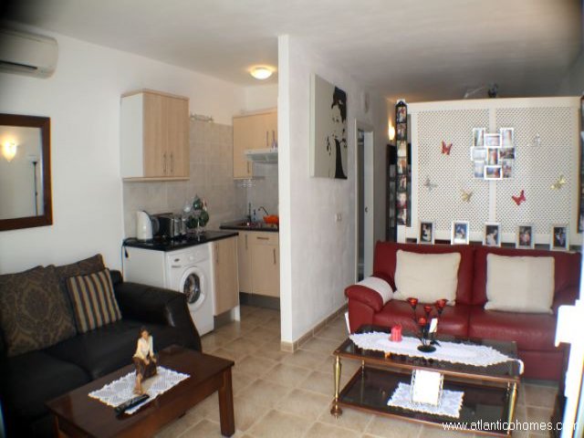A large studio apartment located on the luxury Matagorda Bay complex only a short walk back from the lovely Matagorda promenade and beach. The entire complex underwent a high spec refurbishment just a couple of years ago. The apartment comprises of a lounge/diner, open plan fitted kitchen, bathroom, drying area and bedroom with fitted wardrobes. The lounge boasts flat screen TV with satellite with BBC1, BBC2, RTE1, RTE2, ITV, Channel 4, Channel 5 and Sky News and all apartments have wireless and all apartments have wireless internet connection. There is a nice terrace with lots of storage space. The complex has a large heated communal swimming pool. Apartment for sale in Lanzarote