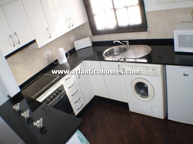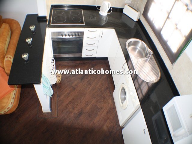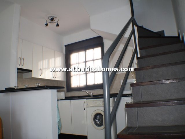 A fully refurbished one bedroom townhouse located on a small well maintained, gated complex in Matagorda with large communal swimming pool set in mature gardens. The townhouse consists of an open plan lounge/kitchen/diner on the ground floor with a patio over looking the swimming pool and upstairs is a double bedroom and bathroom. The upstairs bedroom also has a balcony with sea and pool views. The property has been refurbished throughout including new kitchen, bathroom, flooring and furniture and is finished to a very high standard.