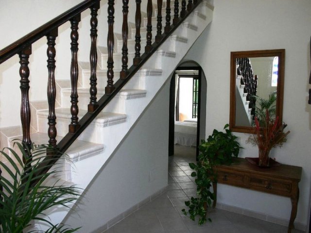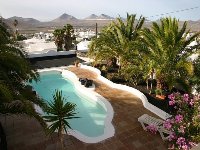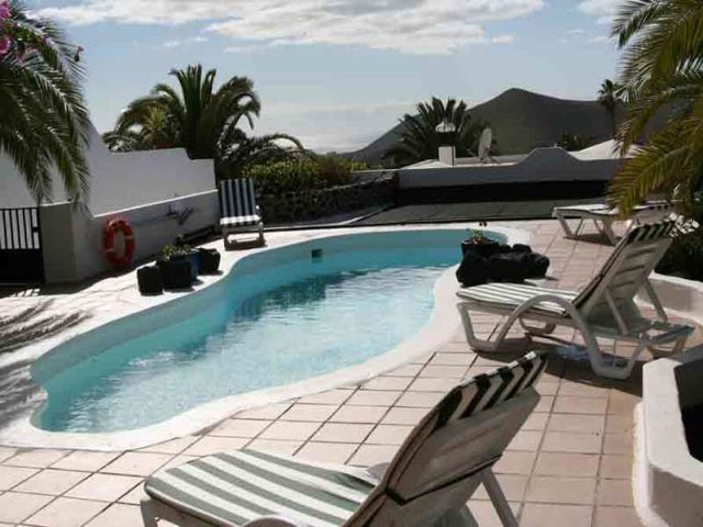 Situated in the hillside retreat of Oasis de Nazaret. A peaceful and quiet location, yet only a short drive to the beaches, golf course, Aqua Park, restaurants, bars, nightlife and tourist attractions of Costa Teguise. The open entrance hall leads to all of the bedrooms and a staircase takes you up to the main living accommodation. Patio doors lead on to an open terrace perfect for ‘al fresco’ dining. Enjoy the breathtaking panoramic views of the surrounding countryside and sea and watching the incredible sunsets that Lanzarote is famous for. Outside the solar heated pool is surrounded by mature gardens and offers two covered terraces for dining or relaxing. There is also a garden kitchen, pool shower and WC. There is also a separate 1 bedroom apartment of 55m²