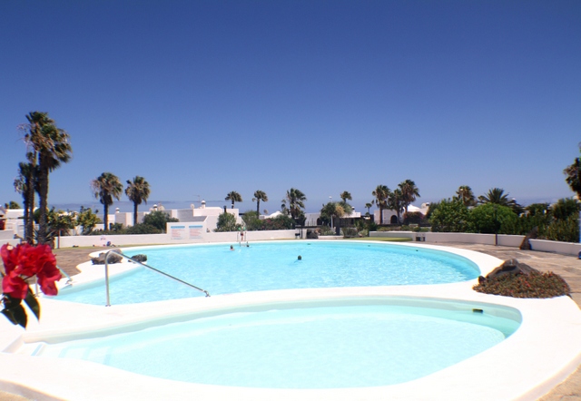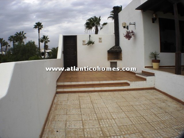 A lovely 2 bedroom detached bungalow set in its own gardens with direct access to the large communal pool. Situated just a few minutes walk to the main promenade and beaches in the San Antonio hotel area of Puerto del Carmen. The bungalow consists of 2 bedrooms, 2 bathrooms, a split level lounge with dining area, separate fully fitted kitchen with serving hatch feature. Outside there is a large private terrace with BBQ area, ample space for dining outside and sunbathing. There is a gate from this property with direct access to the very large communal gardens and swimming pool