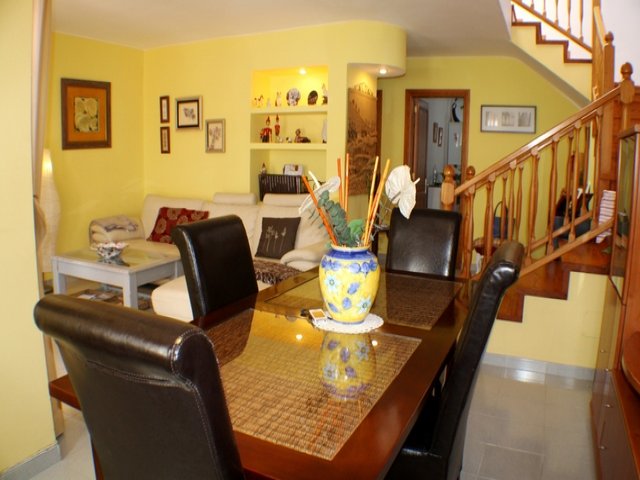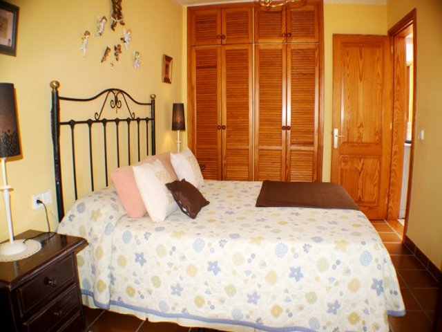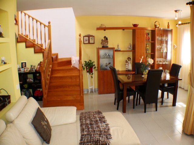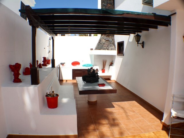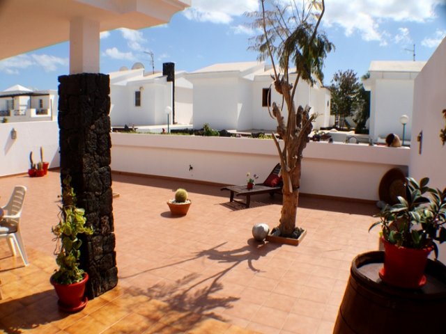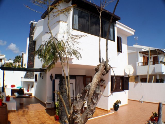 Lovely family sized three bedroom townhouse in Puerto del Carmen. This villa consists of three double bedrooms, two bathrooms, a spacious lounge with dining area and a separate fully equipped kitchen. The outside garden area is fully tiled and has a brick built BBQ and covered dining area. This is a lovely house that would make a great residential home or a holiday property.