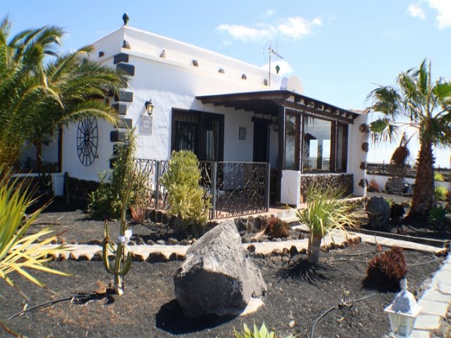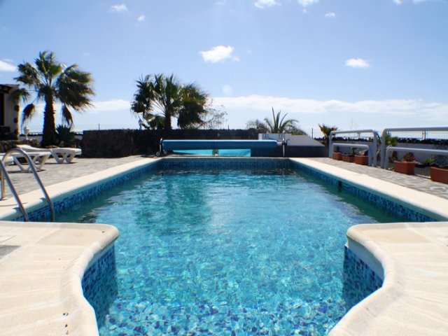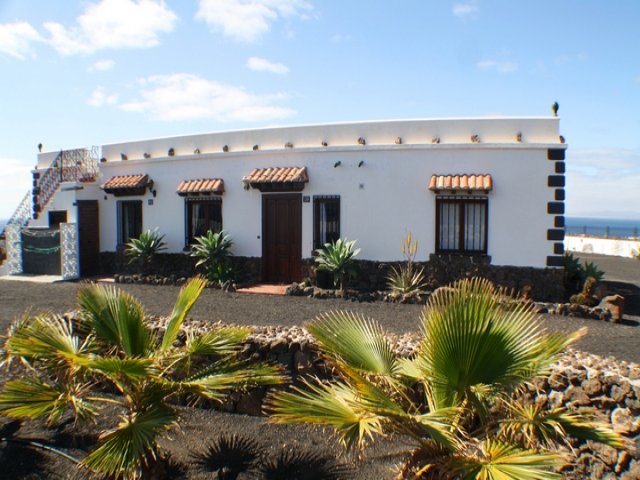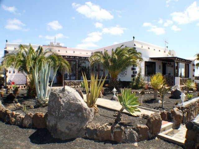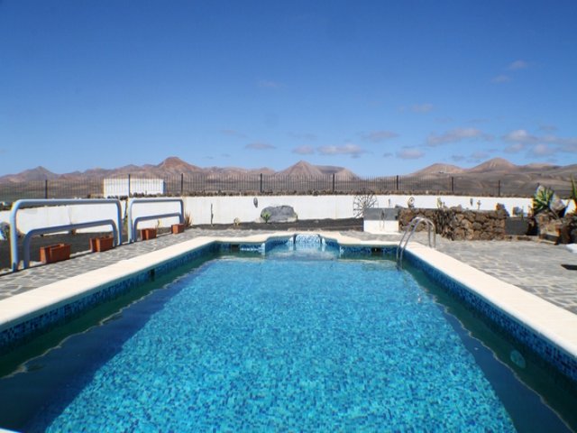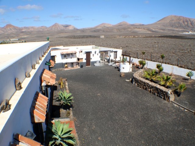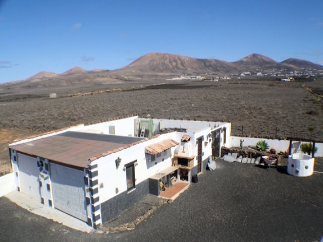 This house is set on a 14,000m² plot, within this plot the house has a constructed area of 250m² in a walled plot of 2500m². Beautiful rustic looking 10 year old house, consisting of 5 bedrooms, 1office room which could be turned in to a sixth bedroom, 2 kitchens with 1 opening out onto the garden, 3 bathrooms and utilty room with washing machine. The property also has great storage room through out. The bedrooms are spacious with built in wardrobes of which the master boasts an en-suite bathroom, another with walk in shower as well as a further family bathroom. There are two comfortably sized reception rooms one of which has a fitted kitchen that would allow the property to be split into 2/3 dwellings for rental. The house has rustic wooden doors, beams, windows and finishings throughout which adds a certain charm and comes furnished with wifi internet access. The magnificent views of the sea and mountains can be seen 360 degrees over looking puerto calero this is especially breath taking from the large tiled roof terrace. The property is set back off the road with a private gated lane leading up to a beautiful garden and pool with two spacious terraces there is also a large double garage that could be converted into a cottage. This property is located in puerto calero close to the harbour and only five min drive to puerto del Carmen or to the main road to playa Blanca this property has many opportunities. There is a separate plot of 14000m² for sale. Linking to this property