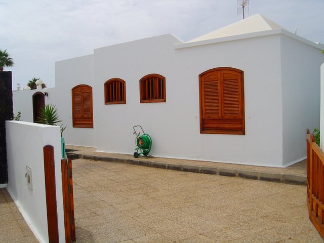 A very well maintained detached villa in a tranquil area of Puerto del Carmen. The accommodation comprises of a lounge/diner and a further lounge, which could be converted to a fourth bedroom, if required. There is a fully fitted kitchen with all the domestic electrical appliances to include washing machine. There is also a separate utility room. Three bedrooms, all with built-in wardrobes and two fully tiled bathrooms. Some windows have security blinds fitted and the furniture is included within the asking price. A telephone line is connected. Private gardens with various fruit trees and very sunny terraces with BBQ area. Private pool and drying area. Parking for one car. Shops, bars, restaurants and the beach are all close by.