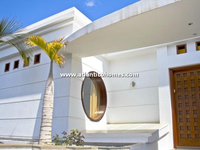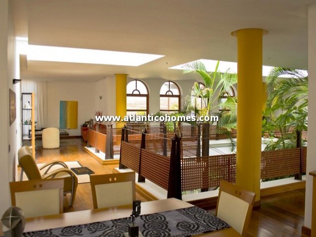Superb villa, with open plan design, with large rooms, consisting of a grand entrance hall and interior gallery living area, with two bedrooms one bathroom, a wc and a large kitchen-dining area on the upper level. The Gallery overlooks an ornate interior garden and living area on the lower level, which has a further three bedrooms and two bathrooms leading off from it. All areas of the house have good light with a uniquely landscaped garden. The total constructed area is 480m², on a plot of 1280m².