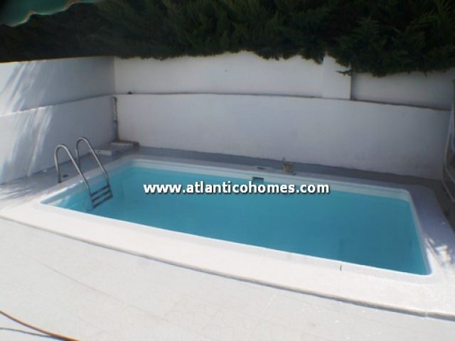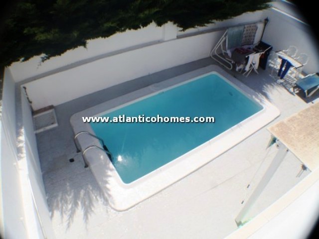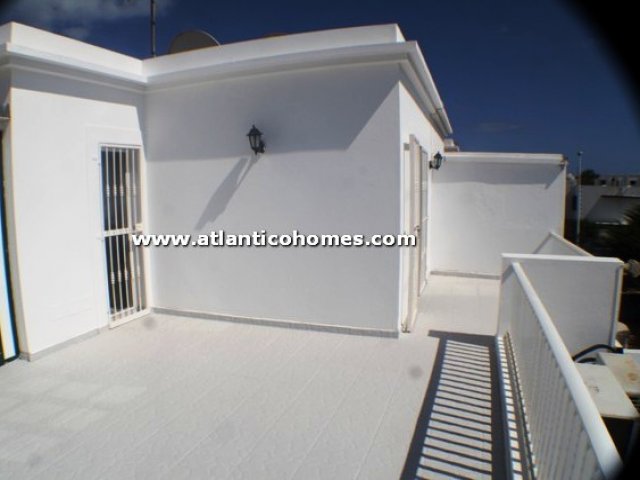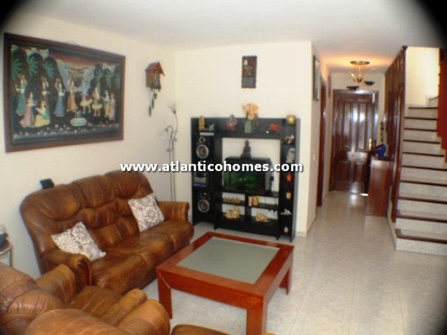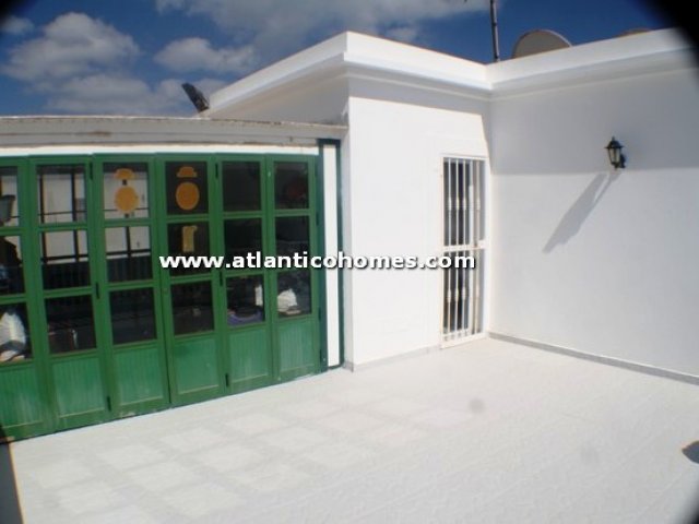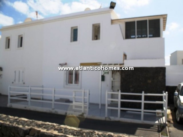 A good sized semi detached town house in a quiet residential cul de sac yet still only a 2 minute walk to the main beach road of Puerto del Carmen. The Town house consists of three bedrooms, 2 bathrooms a separate fully equipped kitchen and large lounge/diner. Downstairs there is swimming pool with sun bathing terraces and a storeroom at the side of the house. The upstairs master bedroom leads on to a large terrace and there is also a further large store room on the upstairs terrace. The house also has an off road parking space. House for sale in Lanzarote