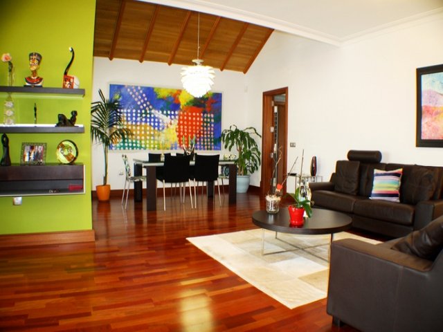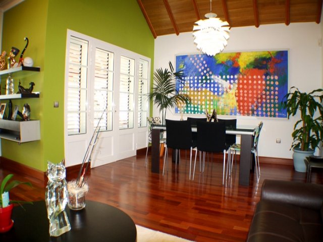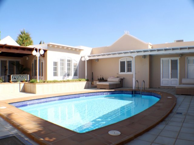 Villa for sale in Lanzarote A superb detached villa 3 bedroom villa located in the exclusive Risco Prieto area of Puerto del Carmen, high above the harbour in the Old Town. This villa is finished to a very high standard throughout. The villa consists of four double bedrooms, 3 bathrooms there is also a further large room currently being used as an office/dressing room that could be used as a fourth bedroom. There are two lounges, a large fully equipped kitchen and a further room with a smaller kitchen and a bodega. Outside you have ample tiled terracing area and nice private swimming pool and well kept gardens. The property has many features including solid wood floors, air conditioning, bodega and electronic gates.