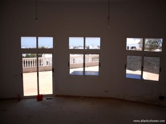 Villa for sale in Lanzarote A brand new detached villa in need of completion. located in the Candelaria area of Tias with amazing views across Puerto del Carmen, the airport and the sea. The villa comprises of a large open plan living room with panoramic sea views, a raised dining area, separate kitchen with utility room. There are four double bedrooms, three en-suite bathrooms and a fully tiled family bathroom. A great opportunity to acquire a brand new detached villa with the opportunity of putting your own stamp on the finish. The villa is set in private walled grounds with gardens and ample sunbathing terraces. This property is also being sold with 2 x 1000m² building plots.