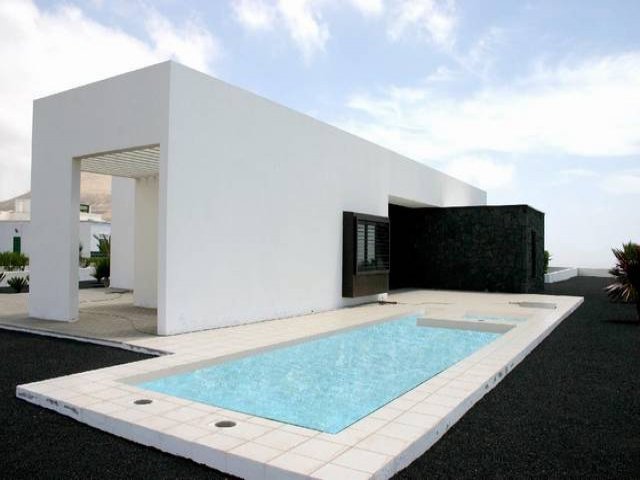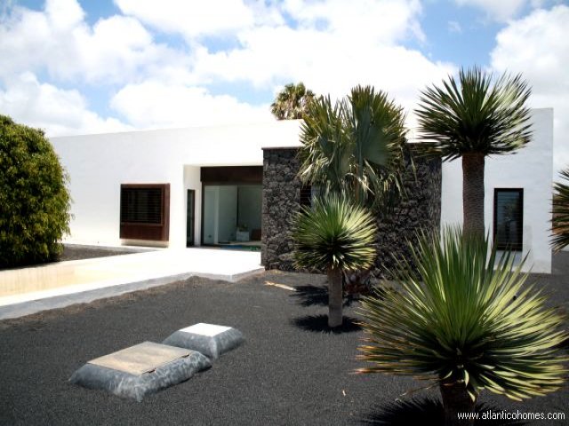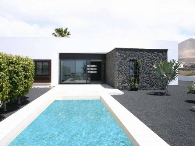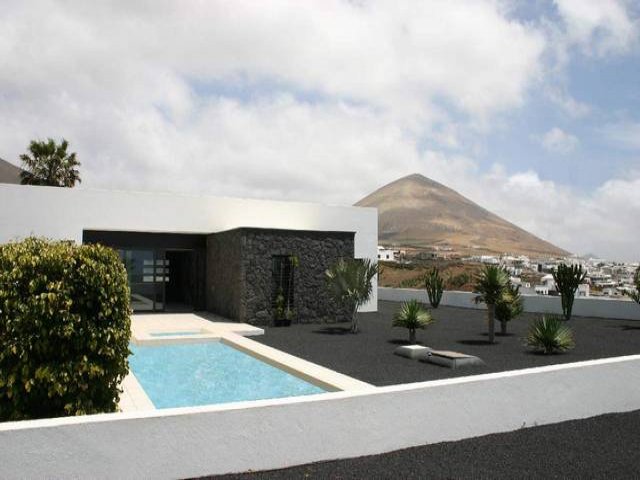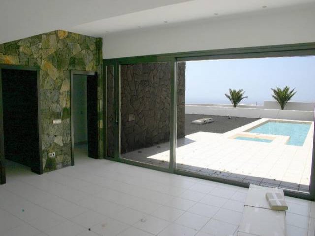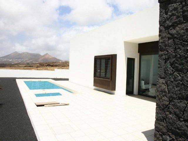Villa for sale in Lanzarote New detached very modern villa set in a quiet street in the Candelaria area of Tias. The villa consists of three bedrooms, two bathrooms a separate kitchen and utility room. The main living is open plan and leads out through large patio doors to the pool area with ample sunbathing terraces. The house is set in mature gardens with a large private swimming pool and off road parking.