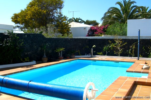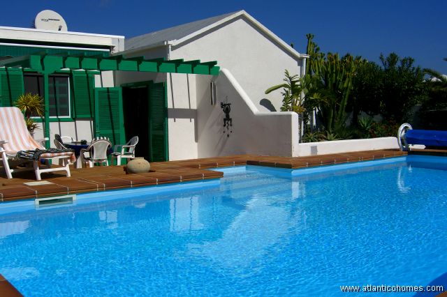 This beautiful detached villa is in one of the most exclusive areas of Costa Teguise. The villa has 3 bedrooms and features a spacious lounge that that leads on to the large terrace/heated pool area which is set in mature well maintained gardens. The whole property has recently been refurbished and also includes a new kitchen.