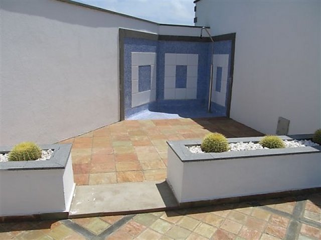 There is also a roof terrace, garage, private parking and landscaped gardens.