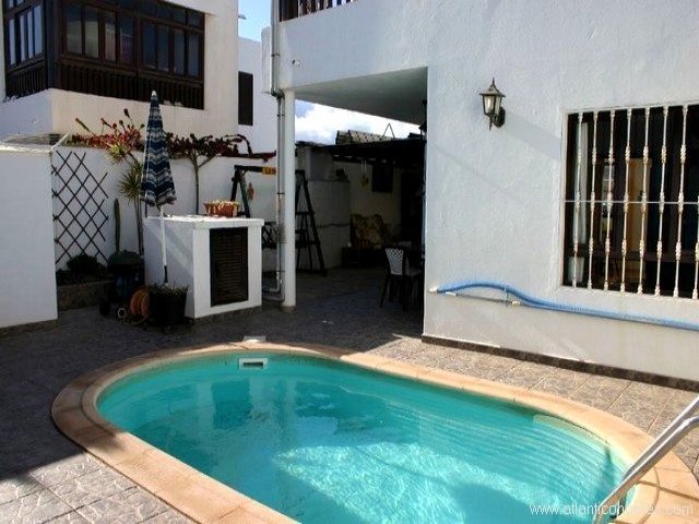 Villa for sale in Lanzarote Centrally located 2 Bedroom, 2 bathroom semi detached duplex with private pool. The property consists of an open plan lounge with separate fully fitted kitchen and utility room, upstairs there are two double bedrooms both with fitted wardrobes and a large family bathroom. The master bedroom also leads out on to good sized private balcony. Outside there is a private swimming pool and covered dining area.