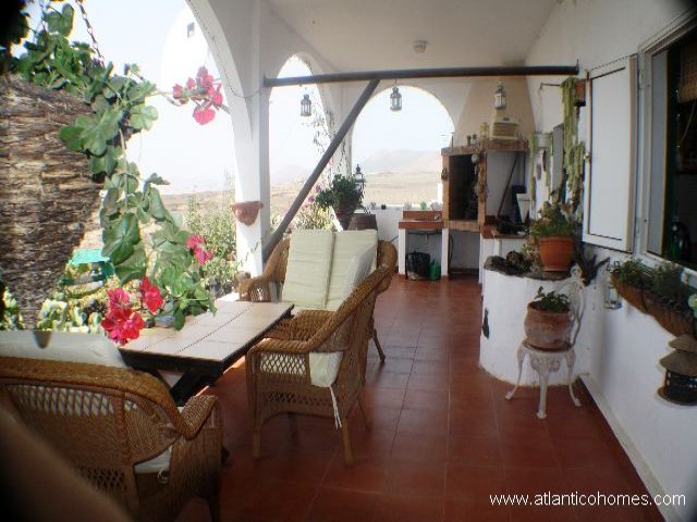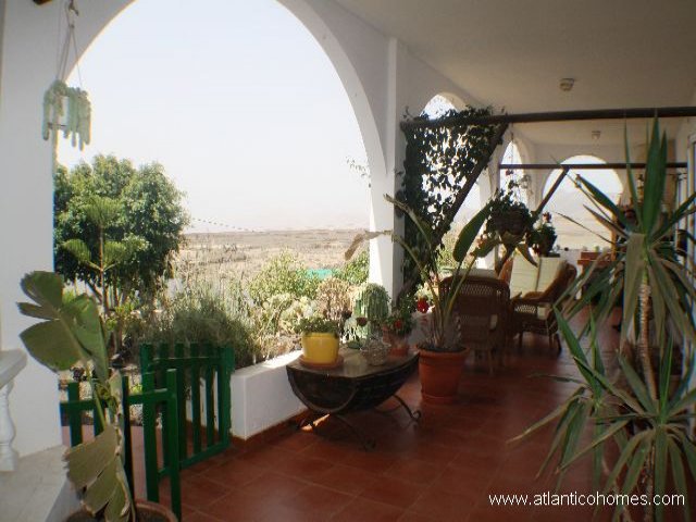 Villa for sale in Lanzarote A fantastic opportunity to purchase a semi detached villa in tranquil location with panoramic sea and mountain views. The villa is located to the rear of the Candelaria area of Tias with its own private entrance. The house consists of 2/3 bedrooms, 2 bathrooms a large lounge, separate kitchen and dining room. Outside there is a nice terrace with BBQ area where you can sit and enjoy panoramic views. The villa is set in beautiful mature gardens and there is also a garage.